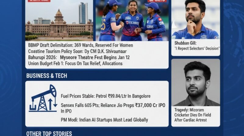 Read Moreಇಂದು ಜನವರಿ 9, 2026, ಶುಕ್ರವಾರ. ರಾಜ್ಯ, ರಾಷ್ಟ್ರ ಮತ್ತು ಅಂತರಾಷ್ಟ್ರೀಯ ಮಟ್ಟದ ಪ್ರಮುಖ ಸುದ್ದಿಗಳುರಾಜ್ಯ ಮತ್ತು ದೇಶದ ಮುಖ್ಯಾಂಶಗಳು